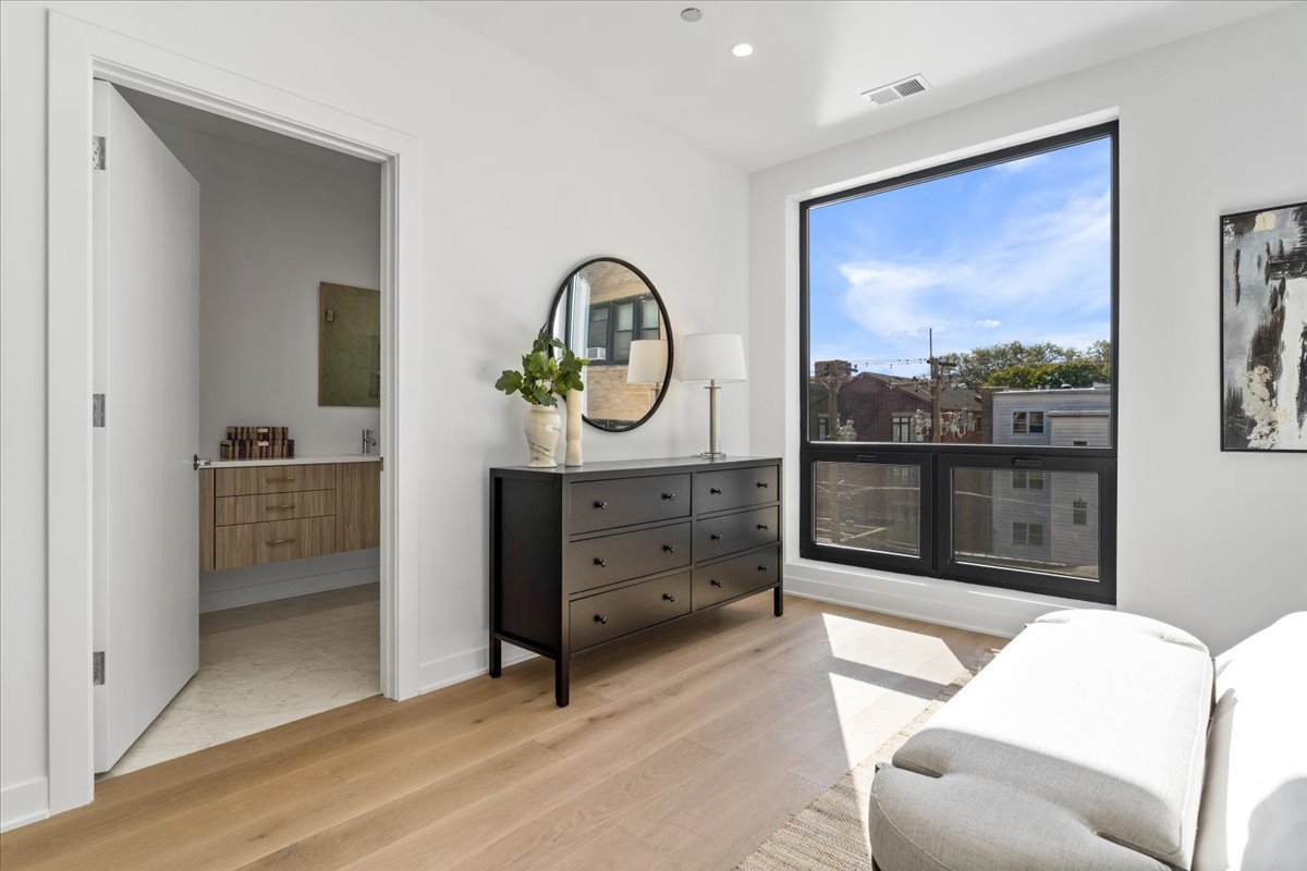 DELIVERING NOW! Introducing 5114 Kenwood - a collection of new construction luxury condominium residences now completed in Hyde Park. Tucked along a quiet, tree-lined, one-way street, 5114 Kenwood delivers the product missing in the neighborhood: single-level contemporary living and light-filled duplex residences - boasting incredible private outdoor living spaces - in an elevator-accessible building with secure parking. Acclaimed developer ZSD, having achieved success with mid-rise developments in West Loop, Lincoln Park, and Noble Square, brings their skillful experience and thoughtful design to Hyde Park. Penthouse B is a stunning half-floor, single-level condo in the building and stretches the length of the top level, with north, west, and east exposures. The elevator delivers residents and guests to a posh foyer and sleek entry. A clean, contemporary aesthetic is carried throughout the home beginning with a massive 19-ft kitchen with flat front cabinetry, large island, pantry closet, and integrated appliances: Bosch dishwasher, Fisher & Paykel refrigerator/freezer, Kitchen-Aid induction range, and externally-vented exhaust hood. The 22-ft wide living room and dining spaces open to a 200 SF east-facing walkout balcony with gas, water, and electric hookups included. Wide-plank wood flooring runs throughout the home. The secluded Primary Suite features a 15-ft wide bedroom, massive dressing room, and contemporary bathroom with floating double vanity, European glass shower, and private water closet. Two secondary bedrooms are designed to easily accommodate a queen bed with nightstands and share an ensuite bathroom featuring porcelain tile, bathtub, wall-hung vanity, and quartz countertop. A powder room is located off the main hallway for non-overnight guests. The private office with natural north light creates a desirable workspace, play area, or game room. Take the elevator to the rooftop to enjoy a private 414 SF rooftop deck - entirely private for this residence. One secure parking space included in purchase price. This is the first opportunity for new construction condominium residences in prime Hyde Park in decades. From 899K to 1.1M. Move in ready! Don't miss your chance to call 5114 Kenwood your next home.